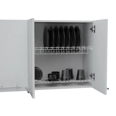 Product Name:Wall Cabinet 24" H, four Doors, with two internal Shelves and internal plate and glass organizer, white